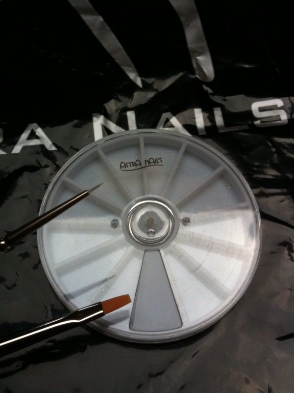 Een leeg strass wiel, en 2 borsteltjes. Een breed (handig voor het aanbrengen van glitters), en een penseel met enkele haartjes. Waarvoor ik die ga gebruiken, weet ik nog niet, maar het leek me in ieder geval erg handig!