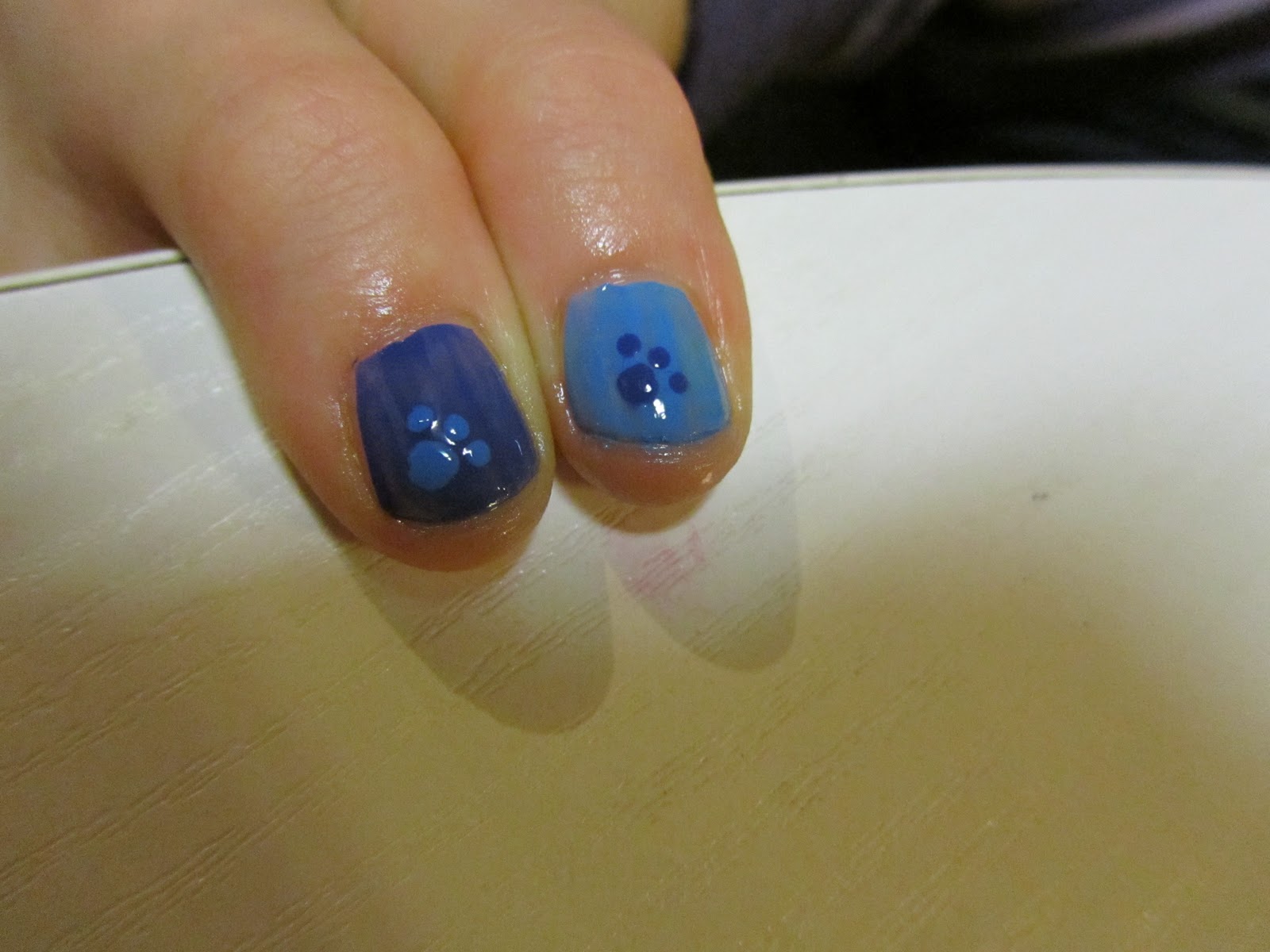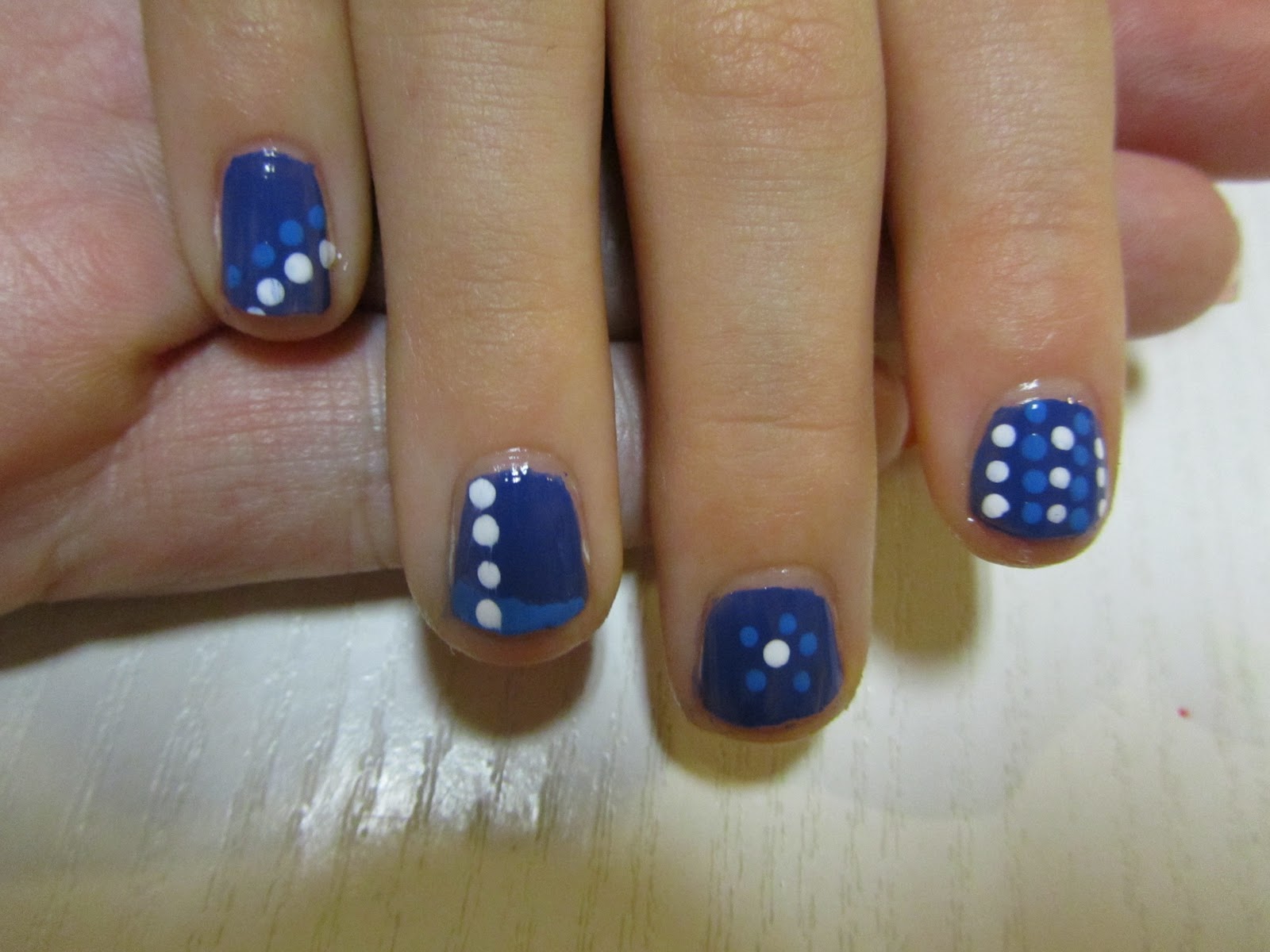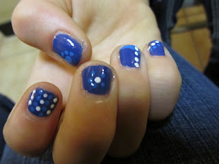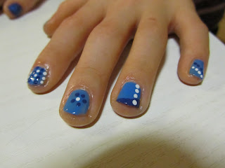 Deze keer koos ze voor een licht/donker blauwe mani met dots.