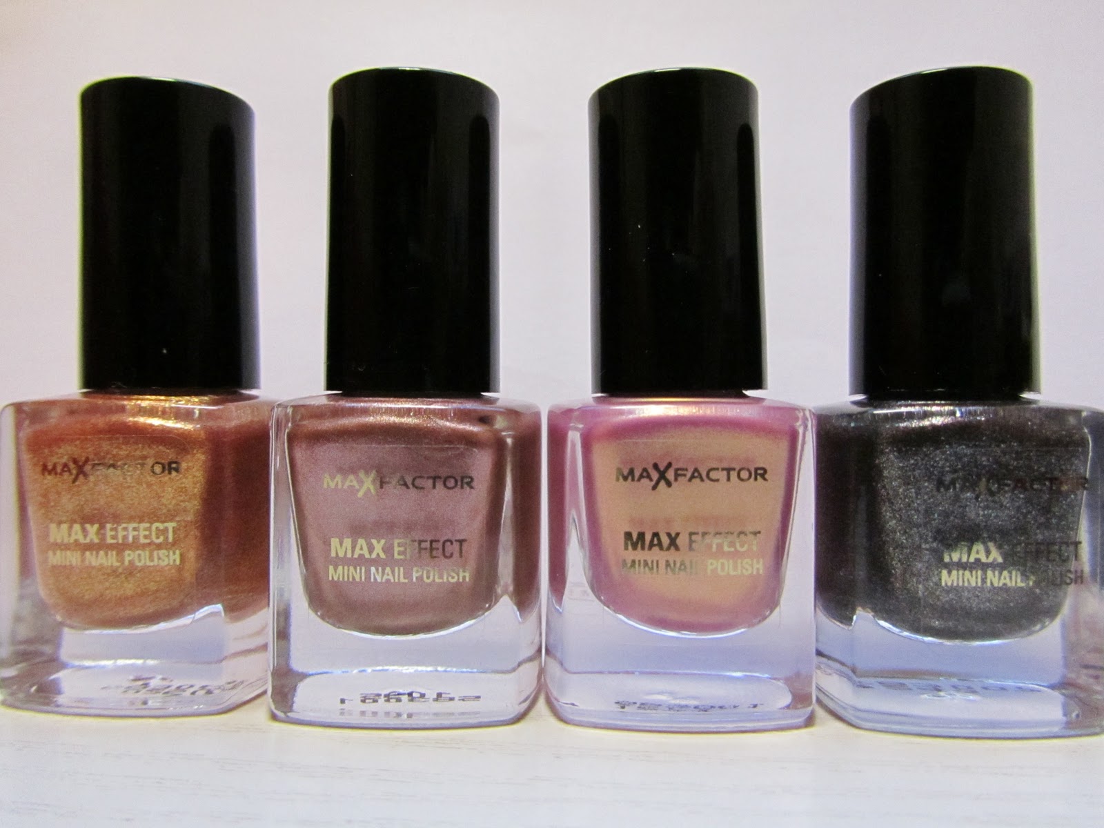 | van L naar R: Maxfactor nr 02, 04, 05, 20 |