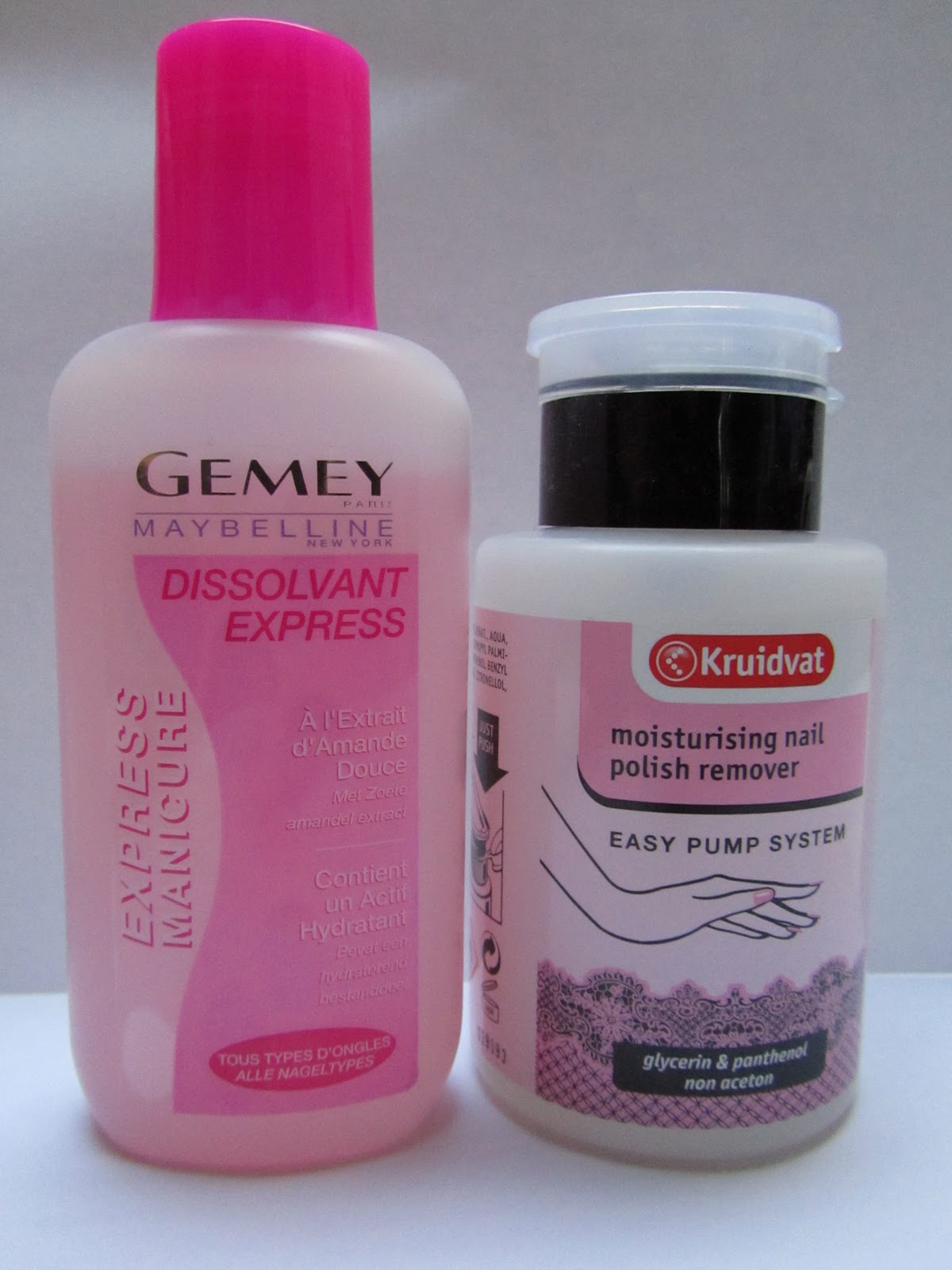 Of hij even goed is den de Gemey qua "remover", neen. Hij is niet zo sterk als die van Gemey. Voor mijn 10 vingers met een gewoon lakje, moet ik max 3 watjes gebruiken met Gemey. Met de Kruidvat remover zijn het er minstens 5.