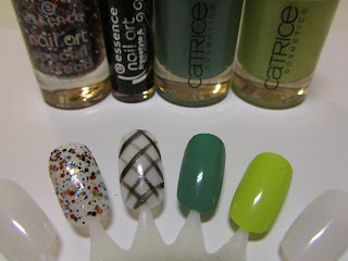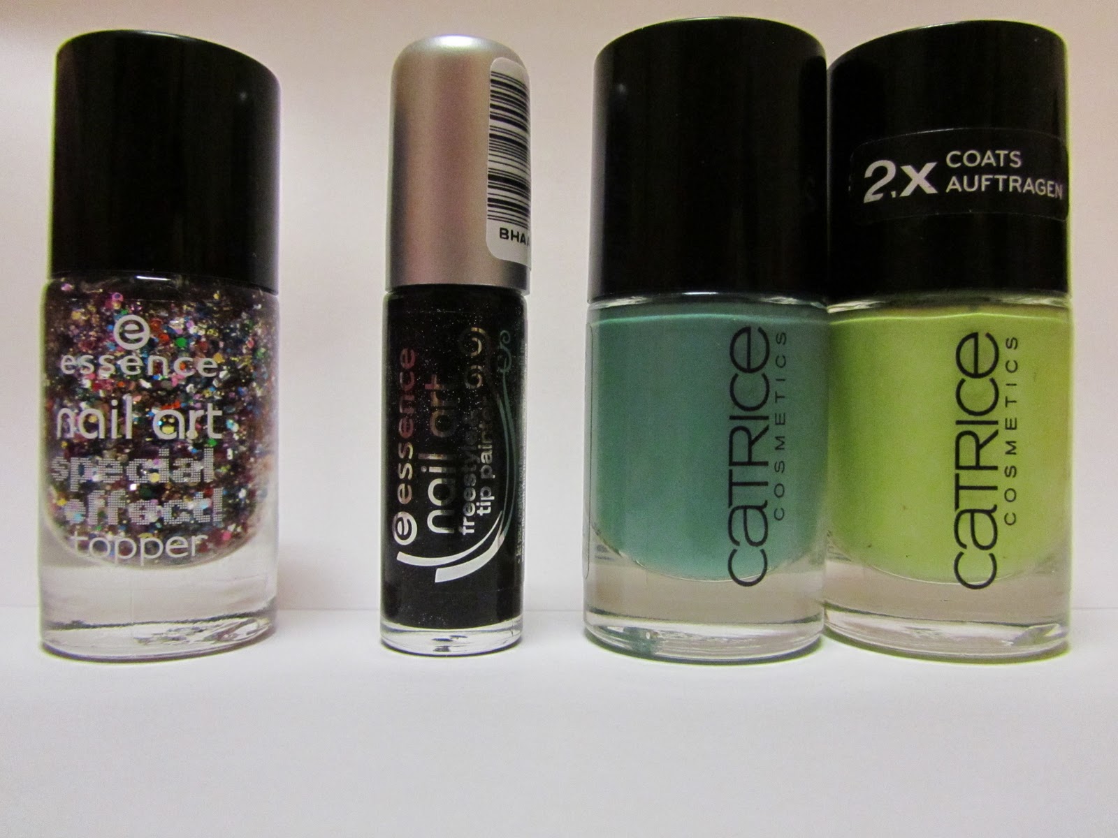 | Essence topper 02 circus confetti, Essence nail art freestyle & tip painter, Catrice 250 I sea you, Catrice 390 Easy peasy, lemon squeezy! |